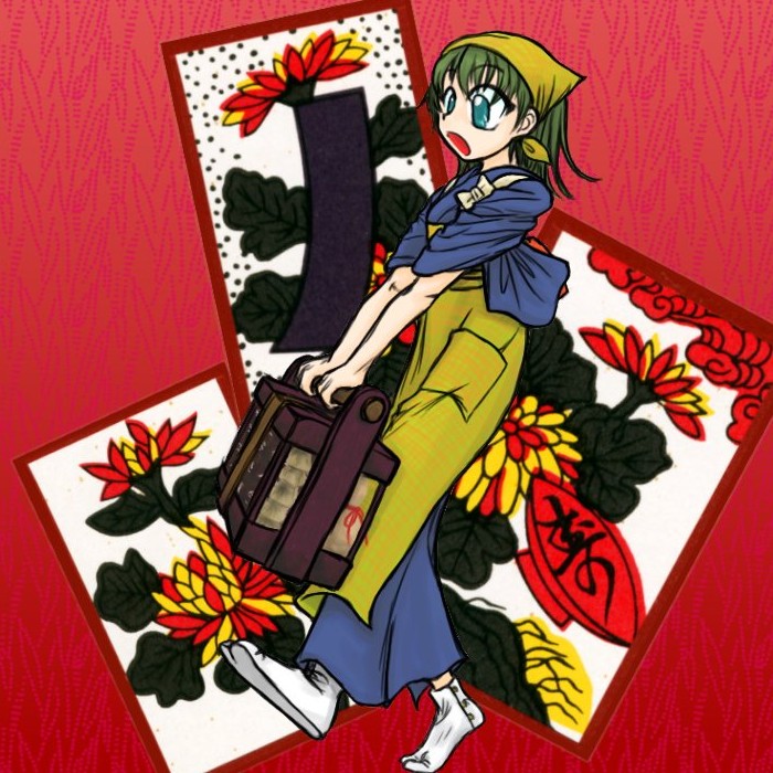 重陽の節句用お弁当を運ぶ料理屋の娘さん。